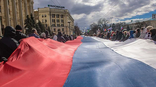 No obstante, al menos 4.000 manifestantes se han reunido en la plaza central de Libertad en un mitin, desplegaron una bandera rusa de 100 metros ante la Administración local.