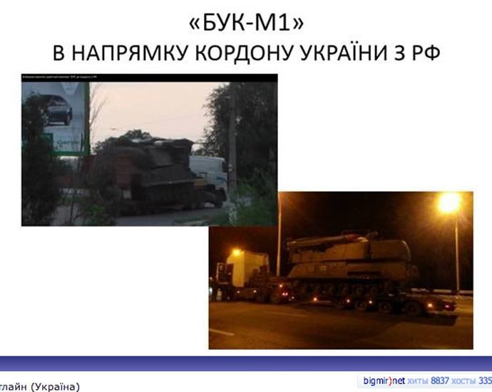 El 19 de julio, el Servicio de Seguridad de Ucrania publicó unas imágenes borrosas en su página web, alegando que en ellas se observaba cómo el sistema Buk-M, desde el que presuntamente se lanzó un misil contra el Boeing 777, estaba siendo trasladado a Rusia. Sin embargo, blogueros notaron de inmediato que las fotos correspondían en realidad a un complejo de defensa aérea del Ejército ucraniano y que dichas imágenes no eran recientes. La clave, indican los internautas, estaba en la cifra 312.